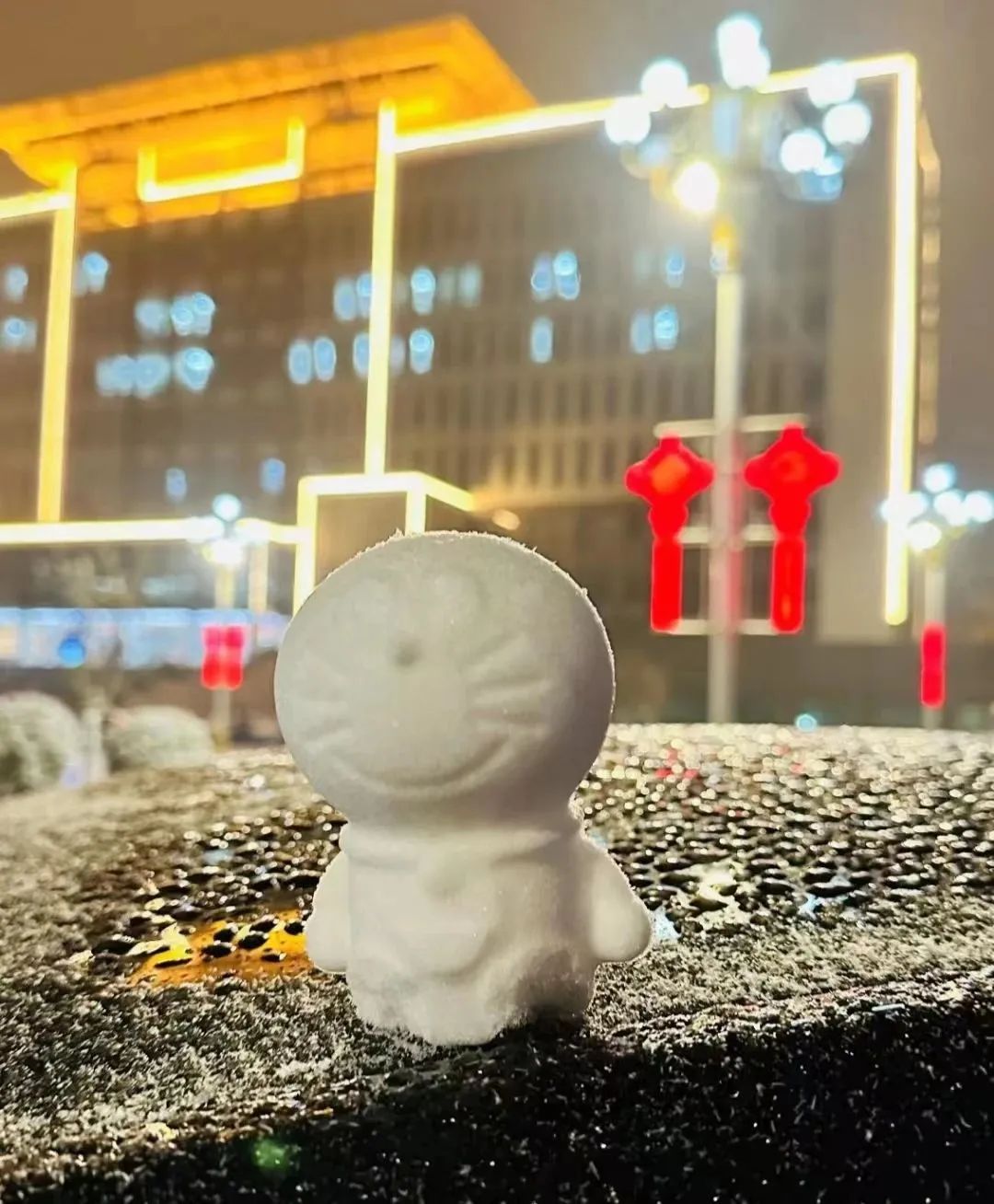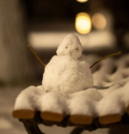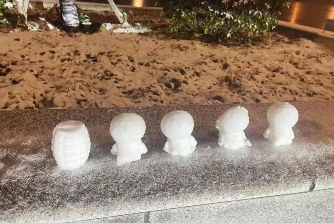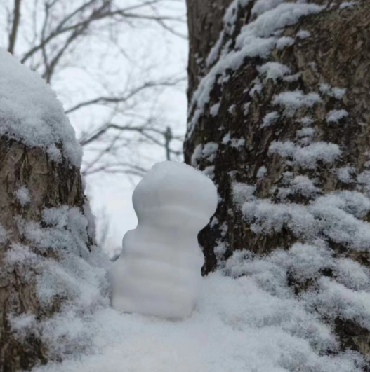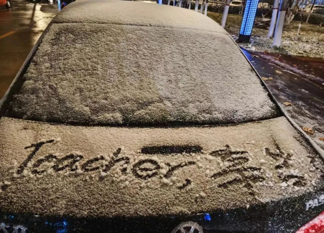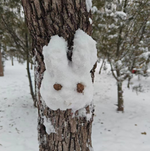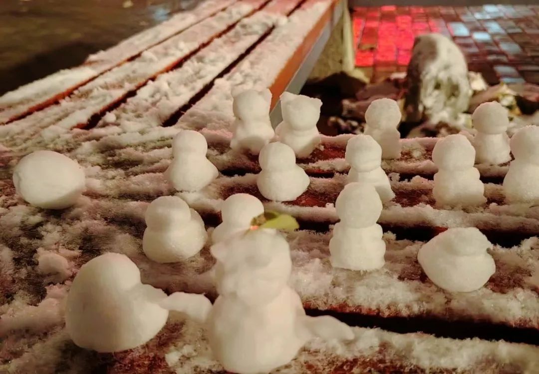 长椅上,操场围栏上,树杈里,教职工车辆的后视镜上以及温暖的手心里……小雪人儿无处不在。