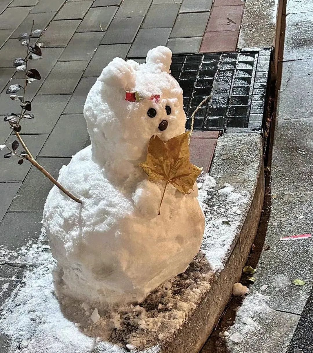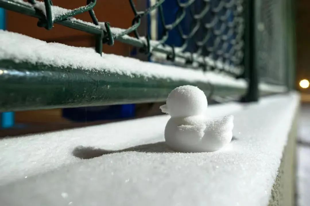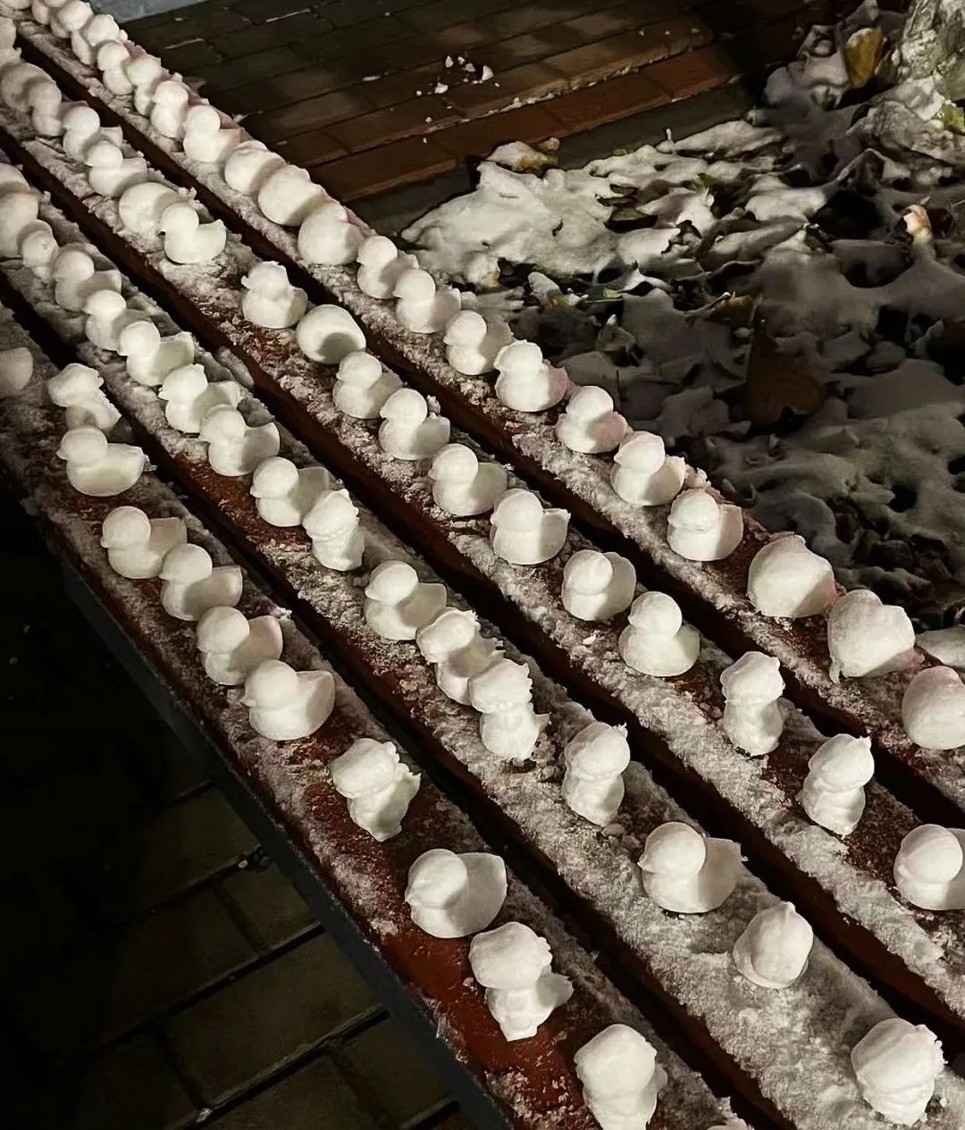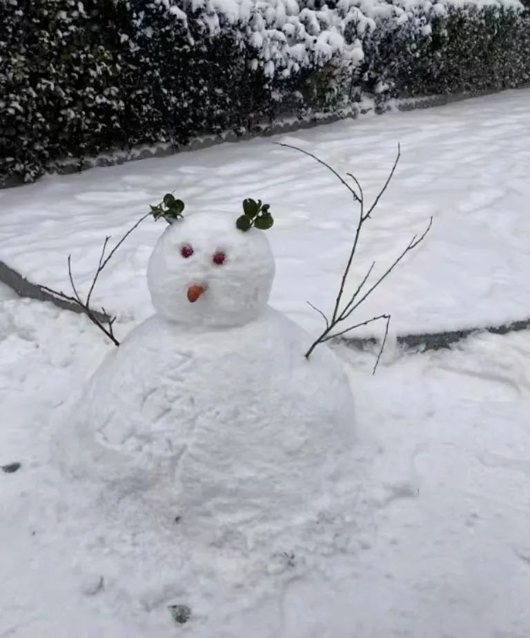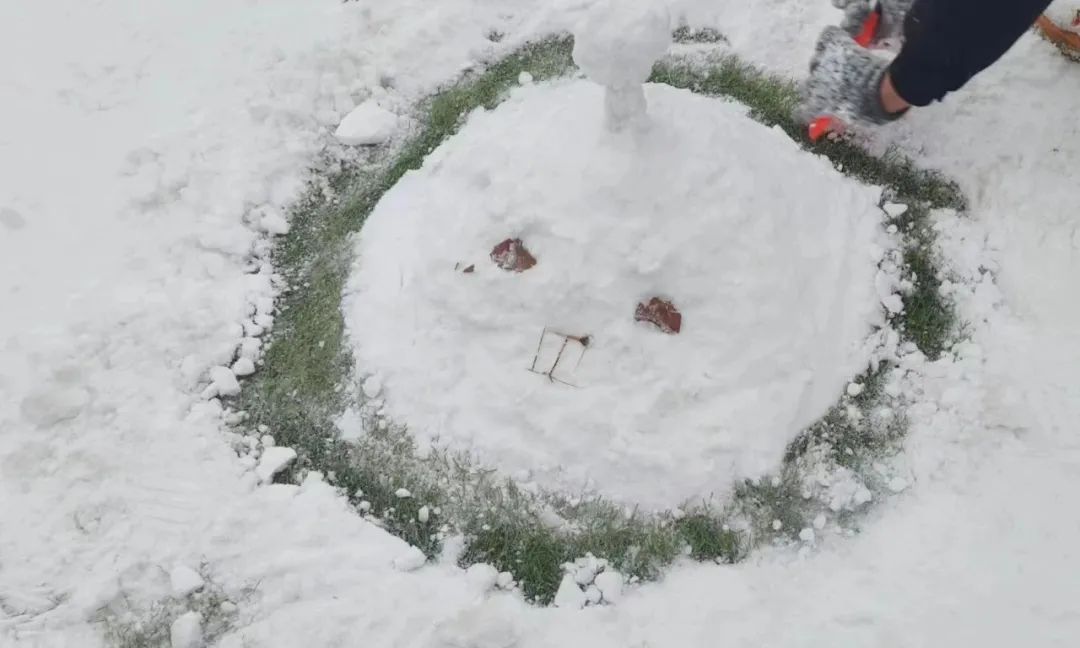 长椅上,操场围栏上,树杈里,教职工车辆的后视镜上以及温暖的手心里……小雪人儿无处不在。