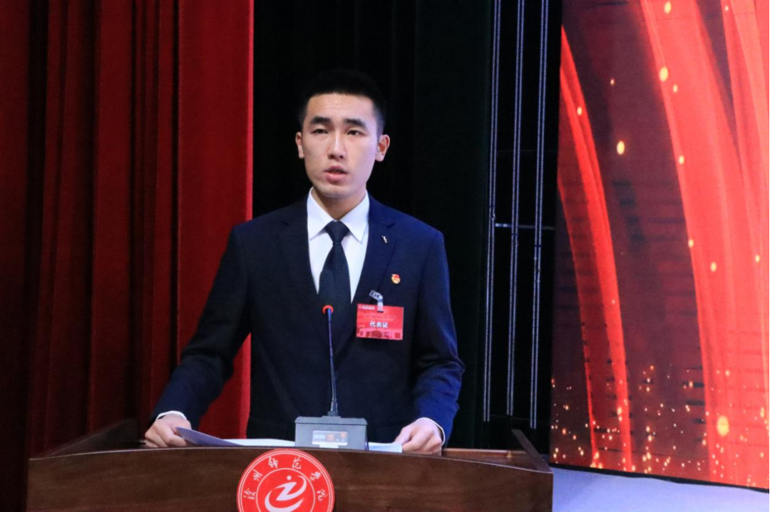 新当选学生会轮值主席王文轩向大会作题为《砥砺奋进开新局 奋发有为谱新篇 为展现学生工作新风貌凝心聚力再出发》学生会工作报告。