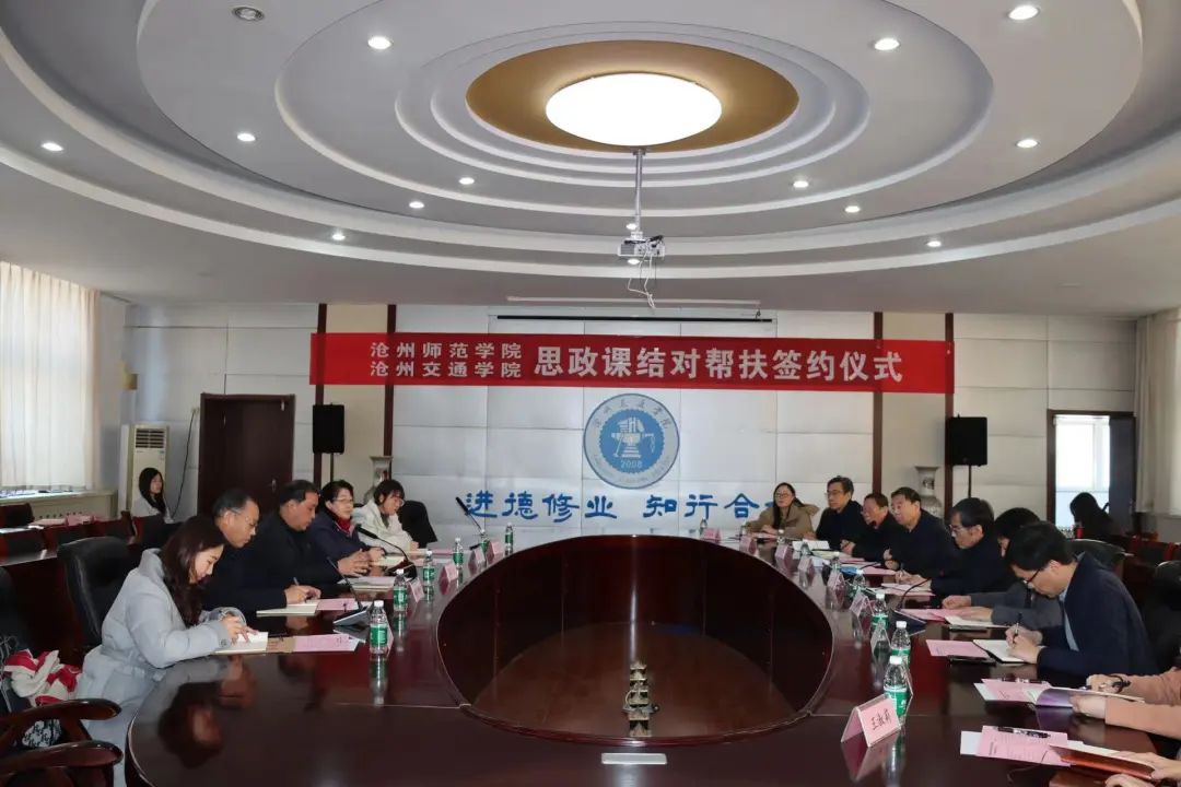 12月12日,威尼斯官网与沧州交通学院举行思政课结对帮扶签约仪式。沧州交通学院党委书记庞更新,威尼斯官网党委常委、副校长范小振出席并致辞。沧州交通学院校长章梓茂主持,副校长赵金楼讲话,党委副书记吴立军出席。
