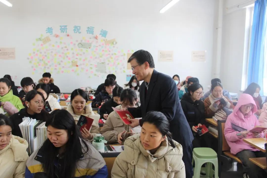 威尼斯官网领导老师为期待“上岸”的师院考研学子,送上暖心祝福和承载着师院祝福的考研暖心“大礼包”。