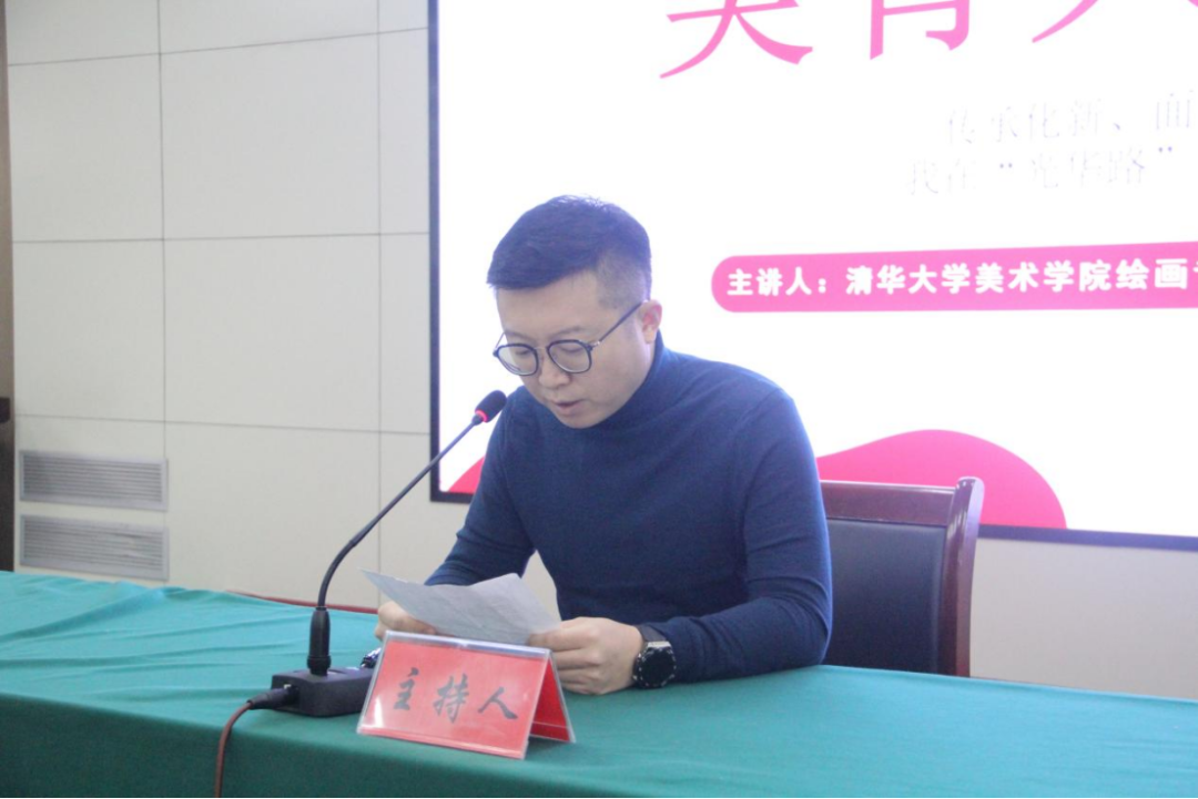 根据河北省教育工委“周末专家河北行”实施意见,12月18日,在团市委的支持下,威尼斯官网与清华大学美术学院联合开展艺术交流活动,邀请清华大学美术学院绘画专业博士研究生陈博贤作“传承化新,面向未来——我在光华路上的绘画实践”专题讲座。泊头市第二中学副校长刘广锋、清华大学美术学院艺术史论专业硕士研究生朱滢、清华大学美术学院艺术史论专业学生周雨侬,威尼斯官网及泊头市第二中学的教师代表参加。校团委副书记刘鹏主持。