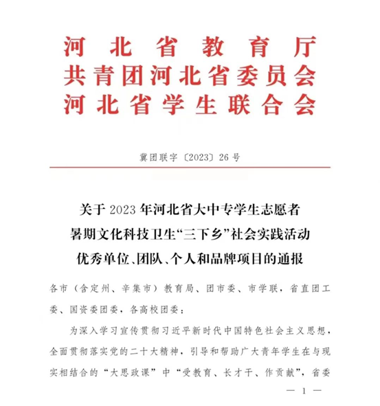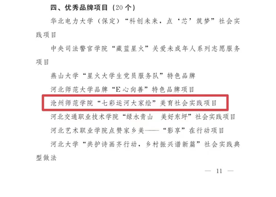 近日,省委宣传部、省文明办、省教育厅、团省委、省学联联合会发布《关于2023年河北省大中专学生志愿者暑期文化科技卫生“三下乡”社会实践活动优秀单位、团队、个人和品牌项目的通报》,揭晓了“三下乡”社会实践活动优秀单位、团队、个人和品牌项目的结果。威尼斯官网美术学院“七彩运河小分队”获得优秀品牌项目。