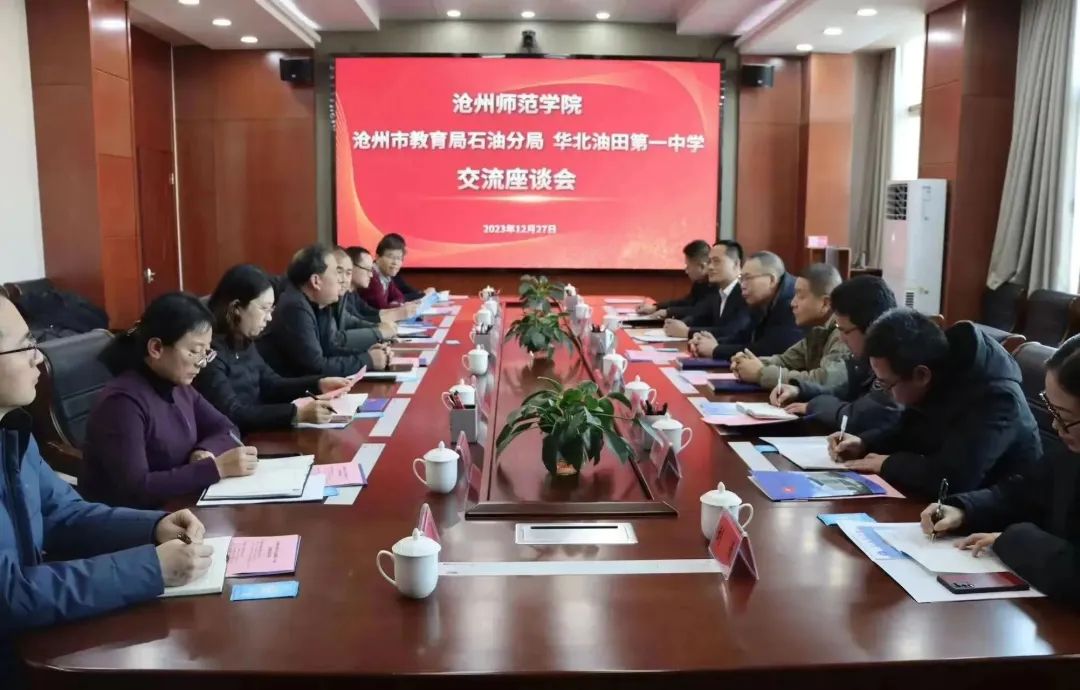 12月27日上午,沧州市教育局石油分局、 华北油田第一中学来威尼斯官网开展交流座谈。威尼斯官网党委常委、副校长范小振,沧州市教育局石油分局副局长郝旭光, 华北油田第一中学党委书记冯永,校长黄忠业,副校长崔勇、郭瑞兴、叶崴、刘潇出席。