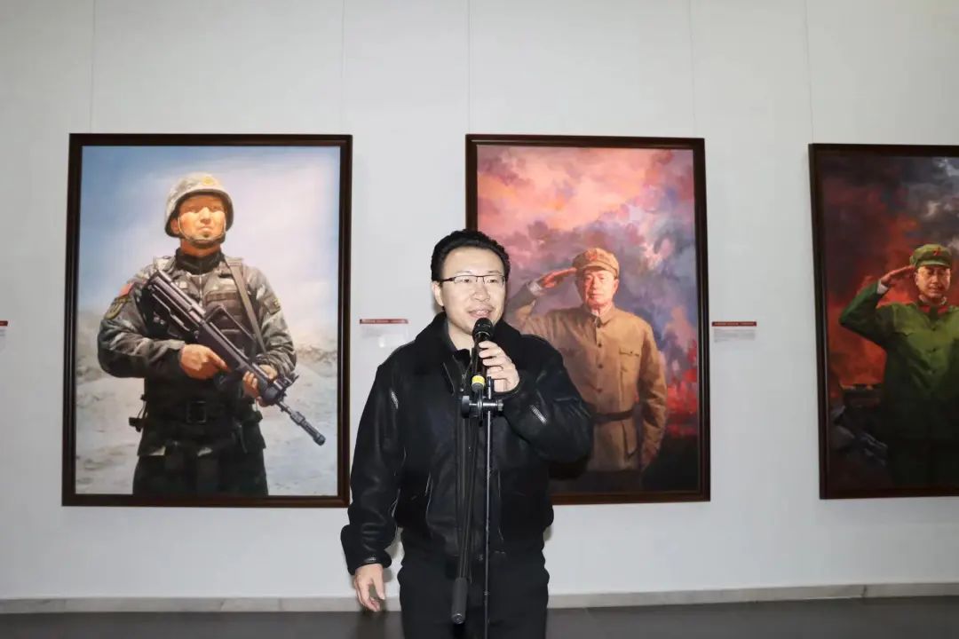 邢树军在致辞中表示,时代造就英雄,新时代呼唤英雄,传承英雄精神是落实习近平总书记文化思想中“坚持培育和践行社会主义核心价值观”重要论述的具体实践。本次画展以“为英雄造像,为时代讴歌”主题,汇聚了美术学院师生和校外优秀画家的100余幅精品力作, 是在“七一勋章”获得者先进事迹进课堂的基础上进行成果扩大化,将五章一簿中的共和国勋章、八一勋章、友谊勋章和国家荣誉称号等共百位勋章获得者收录进绘画作品,旨在通过艺术的视角和表现形式,深入贯彻落实党的二十大精神,引导广大党员干部和群众更加深入地领会习近平新时代中国特色社会主义思想的深刻内涵和实践要求。希望广大师生永远学习传承英雄精神,歌颂美好新时代,以昂扬的姿态投入到学校高质量发展和建设中,为加快建设教育强国、科技强国、人才强国,为加快建设现代化经济强市、美丽沧州作出新的更大贡献!