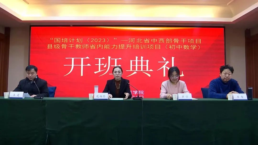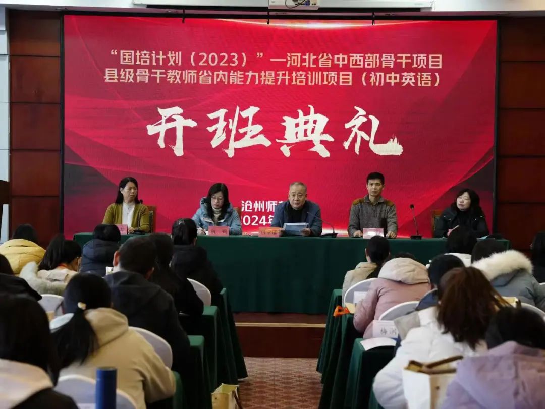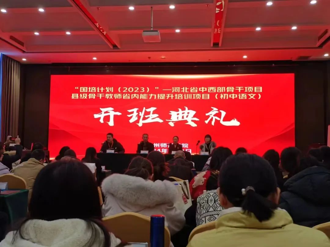 1月3日,“国培计划(2023)”——河北省县级骨干教师省内能力提升培训项目初中语文、初中数学、初中英语培训班开班仪式分别在沧州市天悦大酒店、宏泰大酒店、颐和大酒店举行。继续教育学院院长付学成、书记刘宝炜、副院长苑海珍分别出席三个培训班的开班仪式并致辞,文学院、数学与统计学院和外国语学院国培负责同志出席并讲话,来自河北省唐山、张家口等地的300名县级初中骨干教师参加开班仪式。