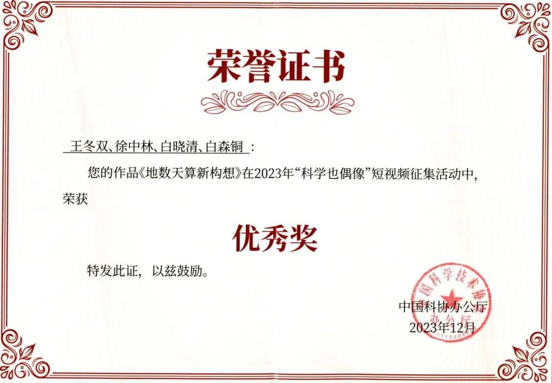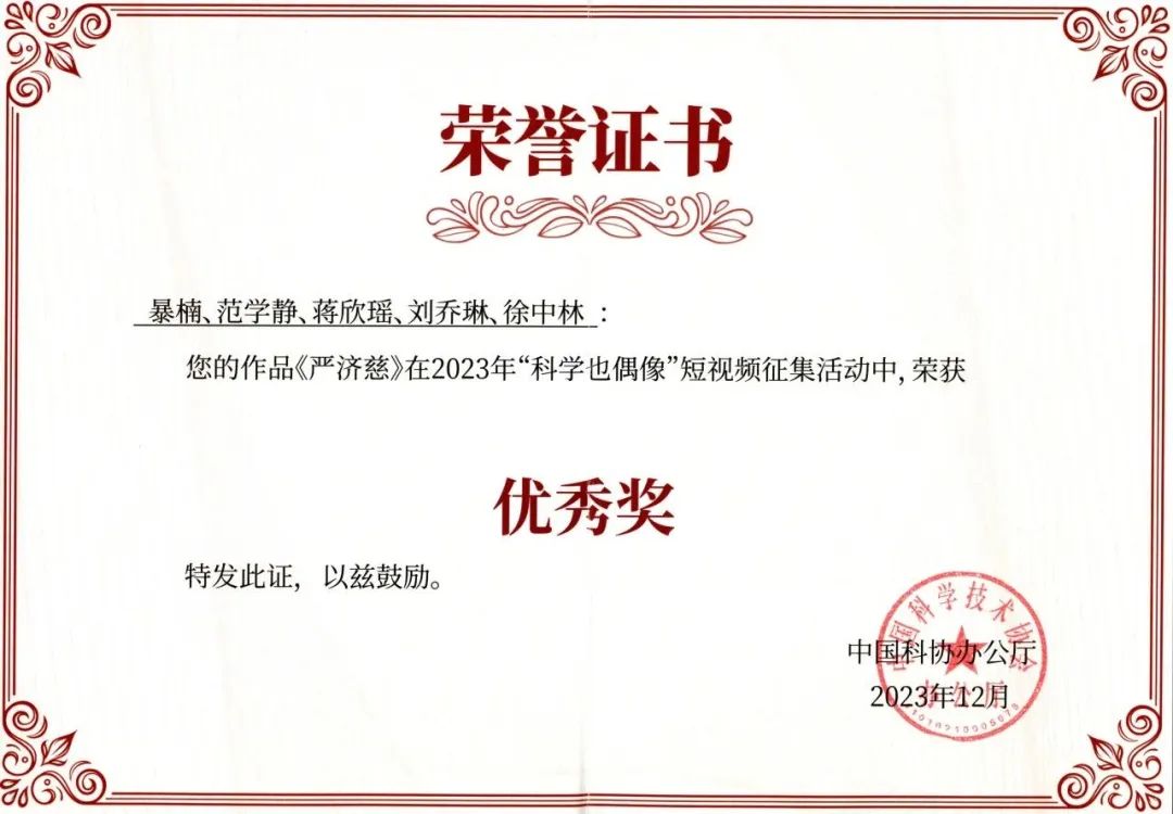 为贯彻落实党的二十大报告提出的“弘扬科学家精神,涵养优良学风”要求,大力弘扬科学家精神,营造崇尚科学、尊重人才的社会氛围,根据《2023年全国科学道德和学风建设宣讲教育工作要点》部署安排,中国科协、 教育部、科技部、 中科院、 社科院、 工程院、 自然科学基金委、 国防科工局等单位联合组织开展2023年“科学也偶像”短视频征集活动正式落幕。威尼斯官网科研处积极响应,广泛宣传,组织多支队伍参加了这场比赛,并在畅想科创工作室的协助下,在全校范围内优选出的6部作品杀入全国决赛。最终,现代教育技术中心王冬双、徐中林,齐越传媒学院白晓清等合作的作品《地数天算新构想》和政史学院学生暴楠等同学的作品《严济慈》获得全国优秀奖。