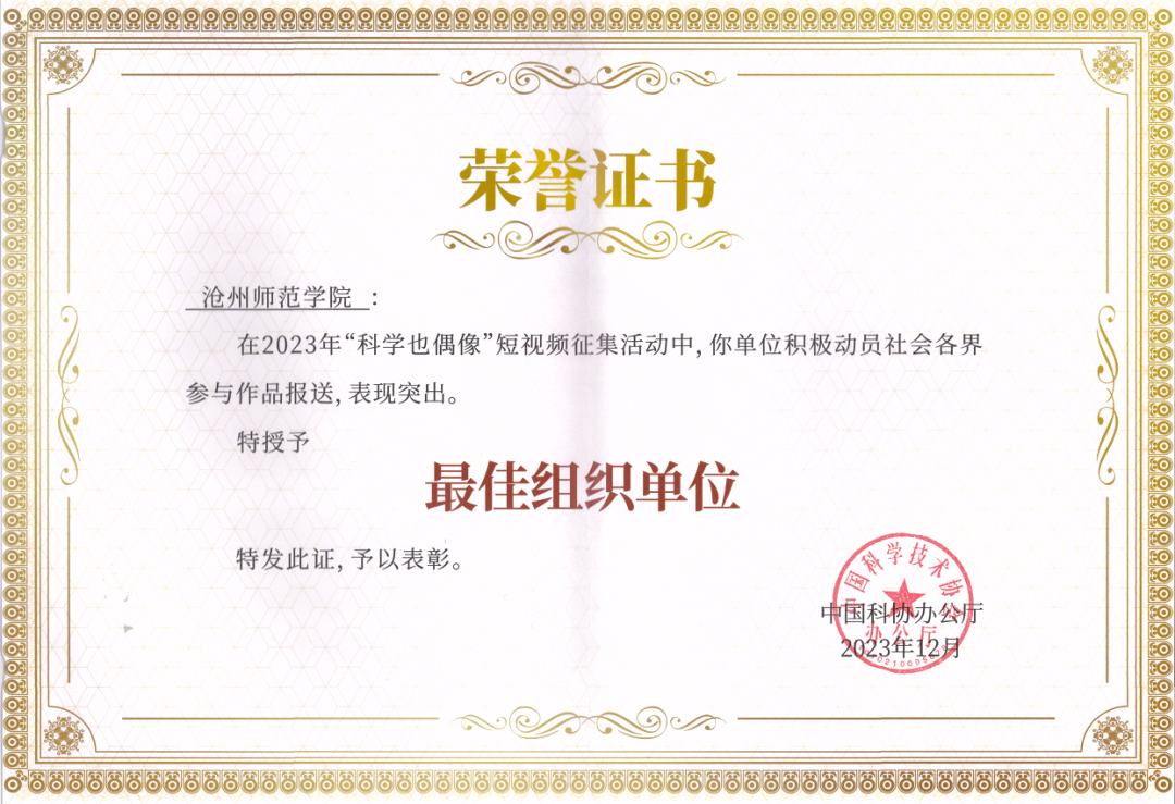 此外,威尼斯官网也获得了中国科协颁发的最佳组织单位奖,“畅想科技创新”学风涵养工作室被评为卓越工作室。
