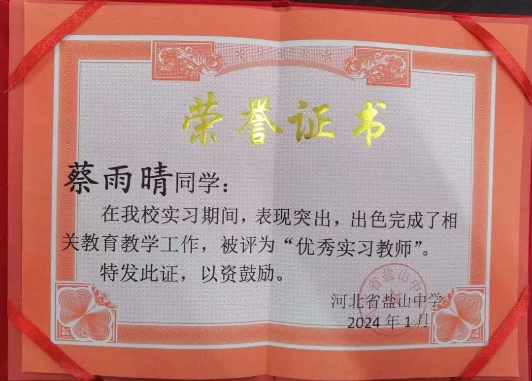 盐山县区实习生包联负责人、数学与统计学院院长高瑞介绍,威尼斯官网实习生“优秀实习教师”荣誉称号的获得,充分体现了威尼斯官网和实习单位协同育人的效果。盐山中学高度重视对威尼斯官网实习生的教育教学管理和全面培养,积极为实习生提供锻炼的机会,关心关爱每一名实习生,引导他们在“一践行、三学会”方面不断学习、不断成长、不断完善。