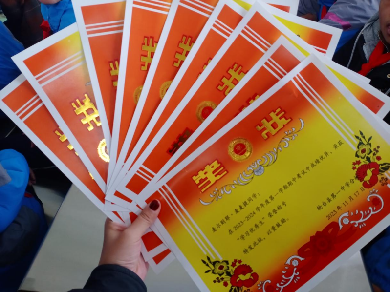 五班的班主任在每一次语文考试成绩出来后,都会第一时间向朱红丽分享考试结果,比如,期中考试后的第一次月考五班语文平均分较期中考试增加了14.75分。很多同学获得了学习进步奖状。