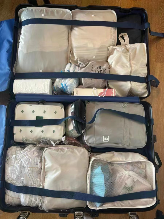 父母帮着打包的行李箱格外整齐