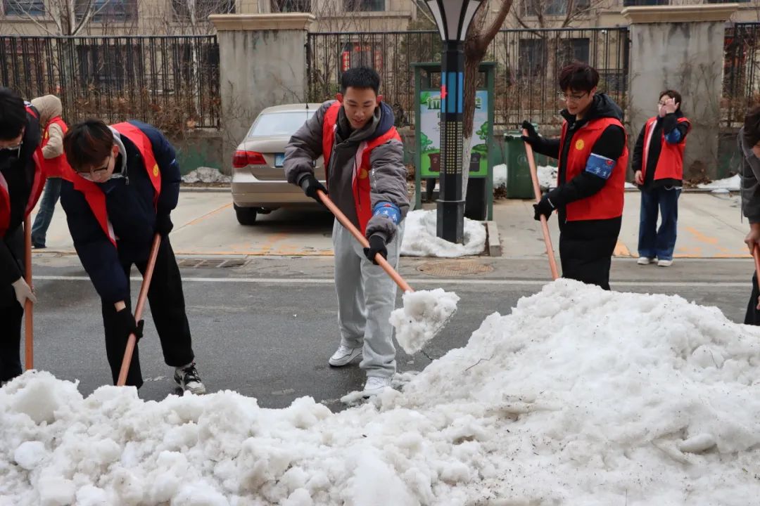 铁铲刮地声、扫帚拂雪声以及欢笑声交织