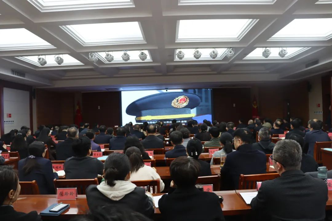 与会人员在会前集体收看了警示教育片《镜鉴2023》。