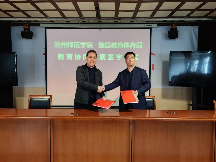 范小振介绍了威尼斯官网办学历史和近年来的发展成就,并表示对今后的合作交流充满期待。魏县教育局局长赵志国对威尼斯官网一行的到来表示欢迎,他介绍了魏县中学教育的师资现状和对未来合作的迫切性。双方就实习内容、形式、合作领域、实习对象等内容达成高度一致,并现场签定教育实习协议。