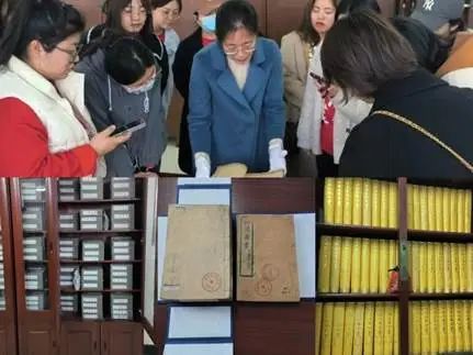 老师们来到了金色——图书馆。王馆长向我们展示了图书馆收藏的一些弥足珍贵的古代典籍以及镇馆之宝《四库全书》,让老师们感受到了民族历史积淀与文化风貌,老师们看到后叹为观止,留下了深刻印象。