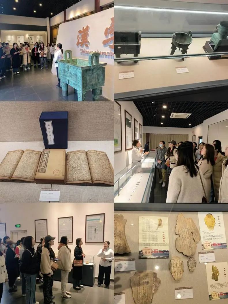 文博馆内详细记载了文字的发展轨迹与历史传承,从甲骨文到楷书,老师们在笔走龙蛇间领略到文字的艺术魅力。馆中还收藏了众多书法字画和古代瓷器,历史悠久,种类繁多,充满了艺术之美。老师们认真聆听,仔细观看,领略了中华优秀传统文化。