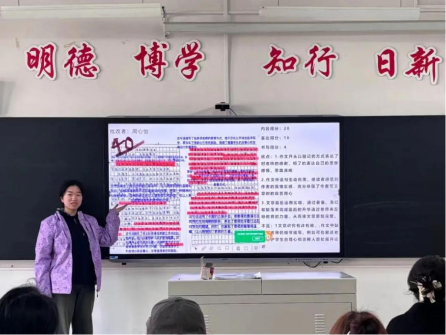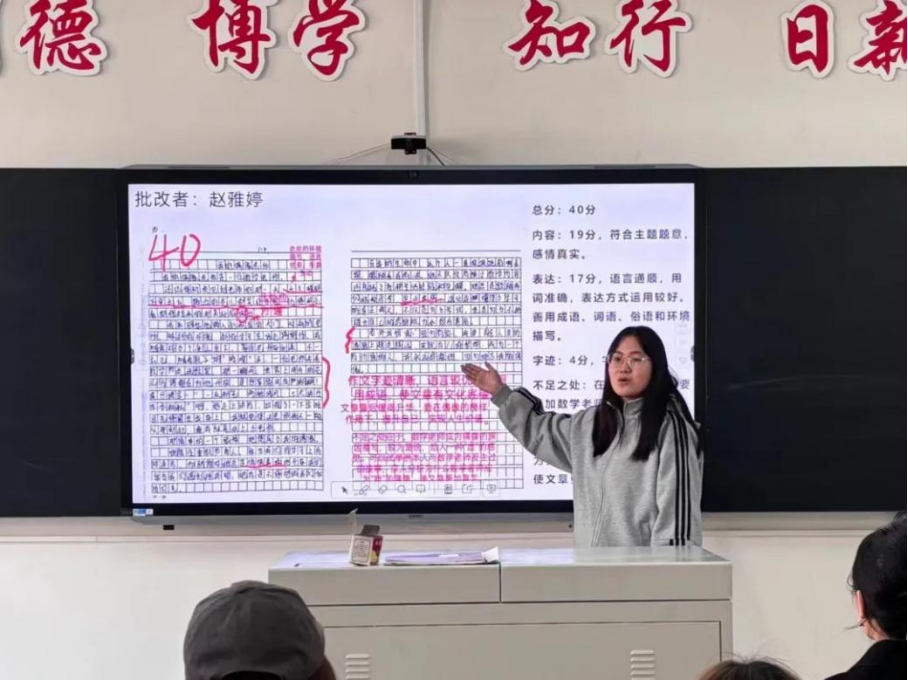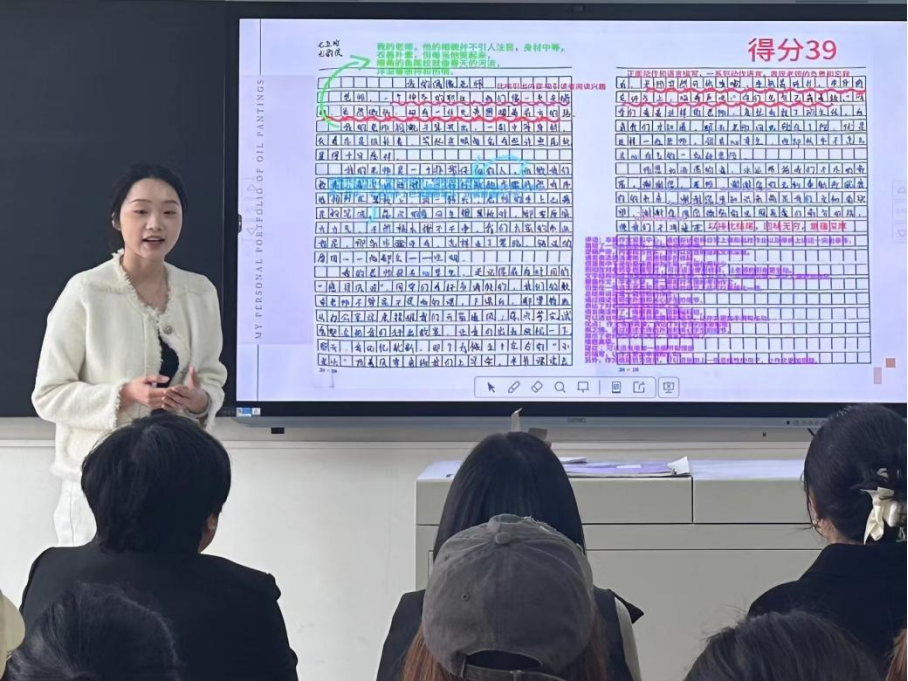 王金萍、程艳芳和王晶老师都分别在每组展示结束后提出改进作文批改的方式,例如评分标准不够明确、批改语言不够规范等,引导小组间进行交流,形成最优方案,为学生在今后的教育教学工作提供有益的参考。