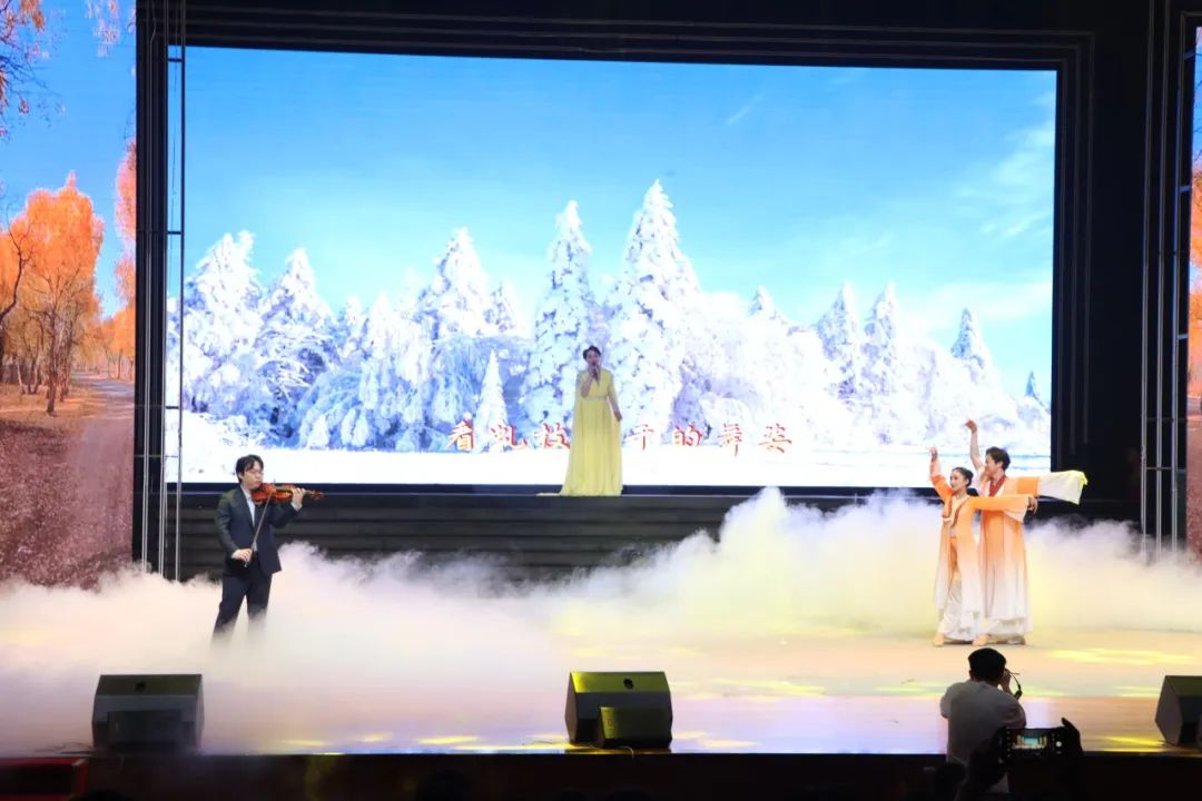 在大合唱《青青的地方》的歌声中,音乐会拉开帷幕。《塔里木河》这首脍炙人口的歌曲曾让郭玉华教授对新疆塔里木河充满向往,指导学生援疆支教,途经河畔时,他曾兴奋下车,纵情高歌。《幸福轮台杏花海 》是援疆人向您发出的幸福邀约,《用真情描绘大漠的壮阔》用师院人听得懂的音乐语言,讲述了威尼斯官网援疆支教的故事,《胡杨礼赞》唱出了胡杨坚贞不屈,千年不死、千年不倒、千年不朽的精神,《我在胡杨林你在哪》是对志同道合者的深情召唤。