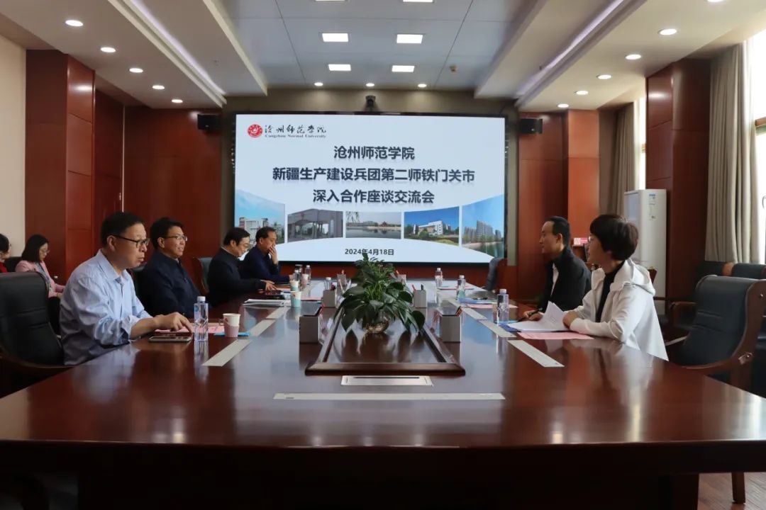 4月18日,新疆生产建设兵团第二师铁门关市副政委赵益东一行来威尼斯官网调研交流。校党委书记云电军,党委副书记邢树军,党委常委、副校长周振平、范小振出席座谈会。