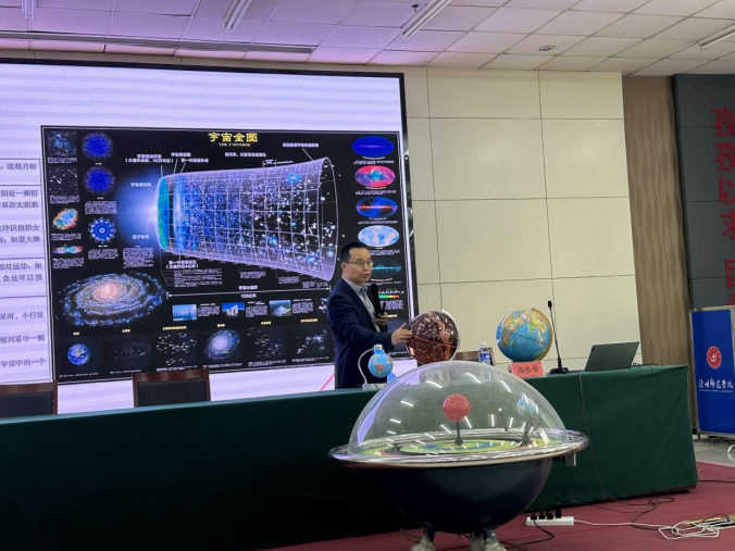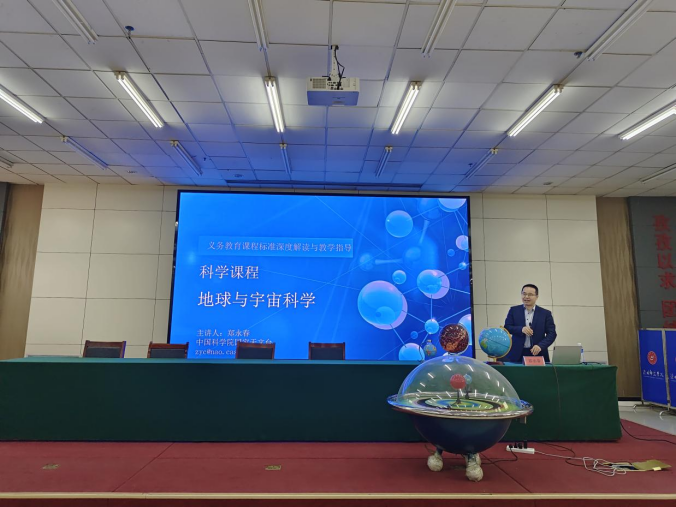 郑永春研究员借助地球仪、天球仪、三球仪等实验仪器为大家详细讲解了地球和宇宙科学领域知识,并通过“有多少个星座”“冥王星为什么会被降级”等天文知识与学生互动。他还从宇宙中的地球、地球系统、人类活动与环境、科学教学学业要求等方面详细解读了科学课程标准,为青年教师申报国家自然科学基金提供了建议和指导。