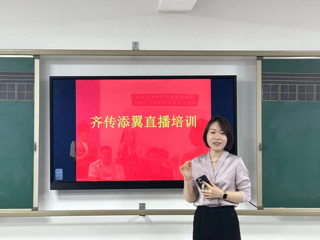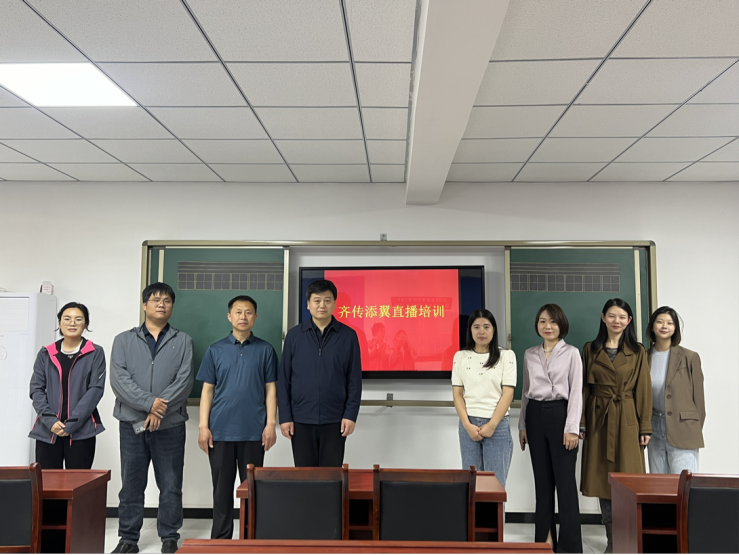 4月24日,8040威尼斯最佳登录“齐传添翼”大学生直播团队与沧州市民宗局联合赴沧县崔尔庄镇“铸牢中华民族共同体意识教育实践基地”为新疆籍务工经商人员开展新媒体直播技能培训。齐越传媒学院党总支书记潘治钢,齐传添翼负责人郭晓月,教师赵乐乐、刘笑言、付静妍及学生志愿者共同参加了此次活动。