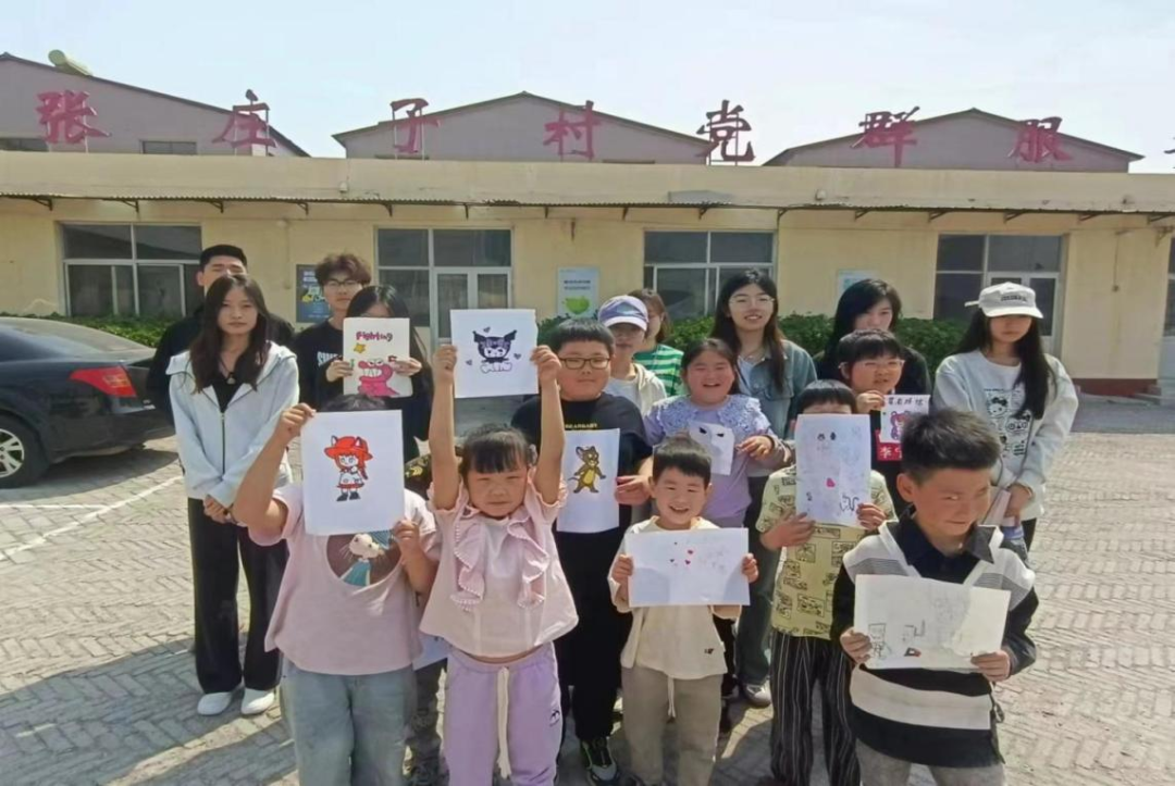 张庄子村“艺术周末”的小朋友正在展示他们的绘画作品