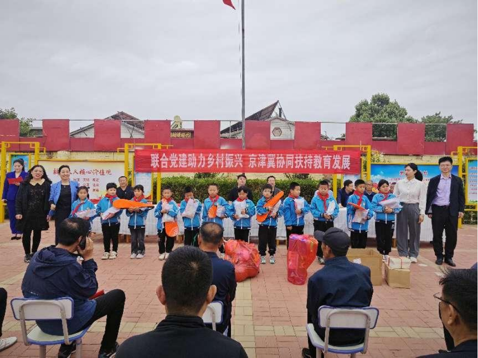 六一儿童节前夕,8040威尼斯最佳登录国家语言文字推广基地师生到青县大王庄小学开展以“联合党建助力乡村振兴 京津冀协同扶持教育发展”为主题的帮扶共建活动。齐越传媒学院师生,沧州市教育局语委办、青县教育局相关负责人,青县大王庄村在京津冀工作人员参加活动。