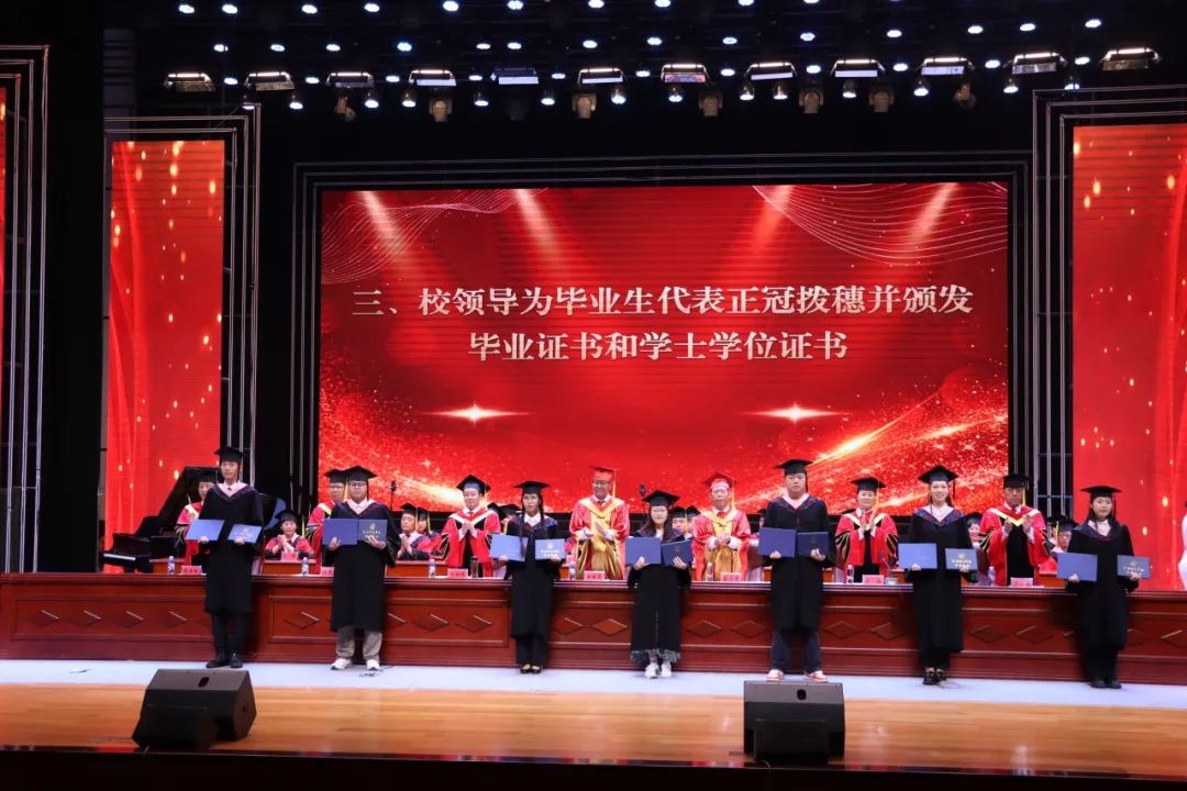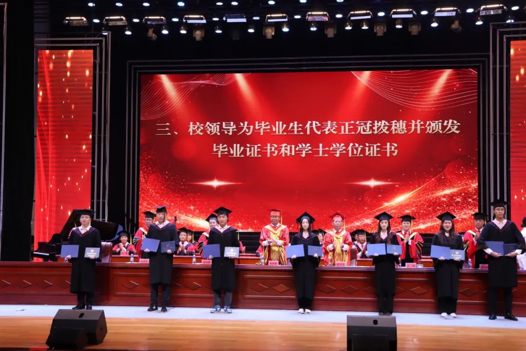 拨穗颁发毕业证书和学士学位证书