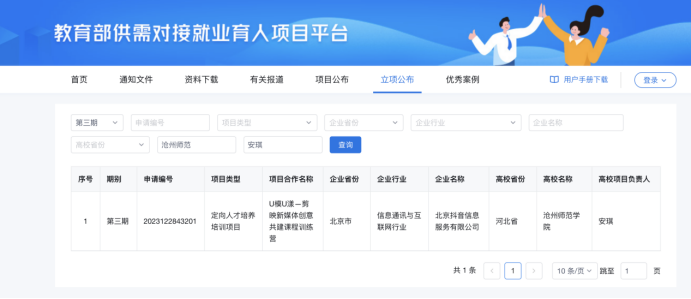 图1 教育部供需对接就业育人项目平台立项通知函件