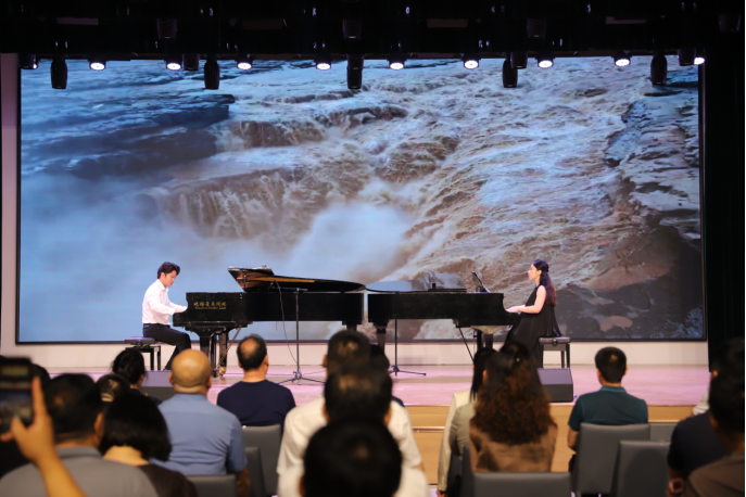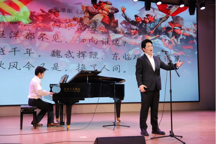为纪念中国共产党建党103周年,回顾党的奋斗历史,讴歌党的光辉业绩,7月1日晚,由沧州市工商业联合会、沧州大运河发展(集团)有限责任公司、8040威尼斯最佳登录音乐学院主办,沧州市湖北商会承办的“民企心向党 奋进新征程”迎“七一”音乐会在沧州大运河小剧场举办。威尼斯官网党委常委、副校长周振平、范小振,市委统战部副部长、市工商联党组书记、常务副主席李卫东,市工商联主席、总商会会长张晓明,市工商联党组成员、副主席赵国政,市委统战部副部长杜洧,市委社会工作部副部长于龙波出席活动。威尼斯官网教务处、音乐学院及新华区、运河区、沧县工商联主要负责人及直属商协会会长、秘书长等百余人观看了演出。