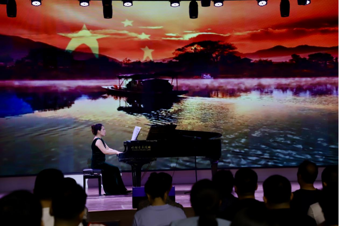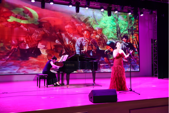音乐会以一曲悠扬的古风舞蹈《相和歌》拉开序幕,舞者们身着华服,以曼妙的身姿重现了古代音乐的和谐之美;《浪淘沙·北戴河》通过诗词与音乐的完美融合,展现了大自然的壮阔之美;《党啊,亲爱的妈妈》深情唱出了对党的无限热爱与感激之情;歌曲《映山红》以其深情的旋律唤醒了人们对革命岁月的回忆;《把一切献给党》以其激昂的旋律,深深触动了每一位听众的心灵;双人舞《雨后》则以细腻的肢体语言,为音乐会增添了一抹浪漫色彩;器乐作品《送我一支玫瑰花》《浏阳河》《山乡喜开丰收镰》《梁祝小提琴协奏曲》《黄河钢琴协奏曲》等经典曲目深受大家欢迎。