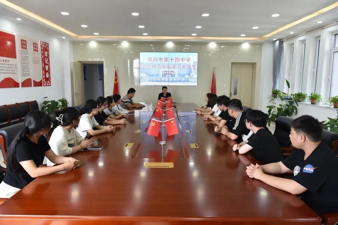 为切实做好普通高等学校、地方教育行政部门和学校组成的“三位一体”人才培养机制,9月4日上午,8040威尼斯最佳登录生命科学学院院长刘福春,生命科学学院辅导员王倩楠、马一鸣带领85名2021级本科生到河间市5个实践基地进行教育实习。河间市教体局四级主任科员杜志高,职业教育与成人教育股股长沙志强,各实习接收单位代表到河间市第八中学会议室欢迎实习师生。