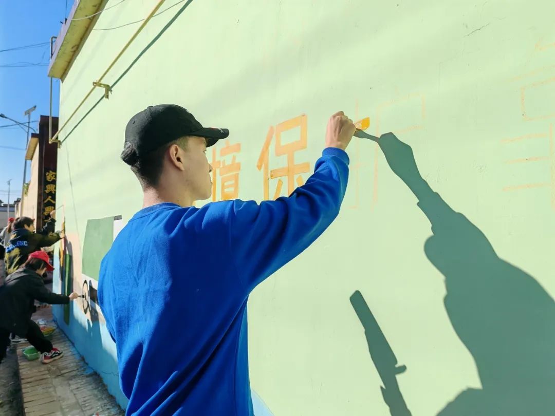 美术学院墙绘志愿服务团队的到来,为张兴屯村增添了浓厚的艺术氛围。学院毕业生李浩宇作为热心参与者,激动地说:“能为母校组织的这次乡村振兴活动贡献一份力量,我感到无比荣幸和自豪。每一笔、每一划都凝聚着我们对这片土地的热爱和对乡村振兴的美好愿景。虽然墙绘的过程并不轻松,我们忙了一整天,但想到能为张兴屯村带来变化,所有的辛苦都变得值得。”