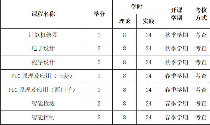 工业智能控制微专业是融合人工智能、控制工程、电气工程、机械工程等多个学科的“新工科”微专业。本专业面向国家智能制造重大战略需求,结合当前人工智能和工业智能化等技术的最新发展以及机器人智能控制领域的应用,协同三菱电机自动化(中国)有限公司等合作企业,聚拢自动化、电气工程及自动化、机械电子工程三个专业优秀师资等教学资源,开设《计算机绘图》《电子设计》《PLC原理及应用》《智能控制》等7门课程,以工业实际应用为背景,倡导做中学、做中练、做中悟,强化学生实践能力和创新意识为特色,项目驱动教学全过程,培养具备智能控制领域专业知识、综合素质和能力的跨学科专门人才。