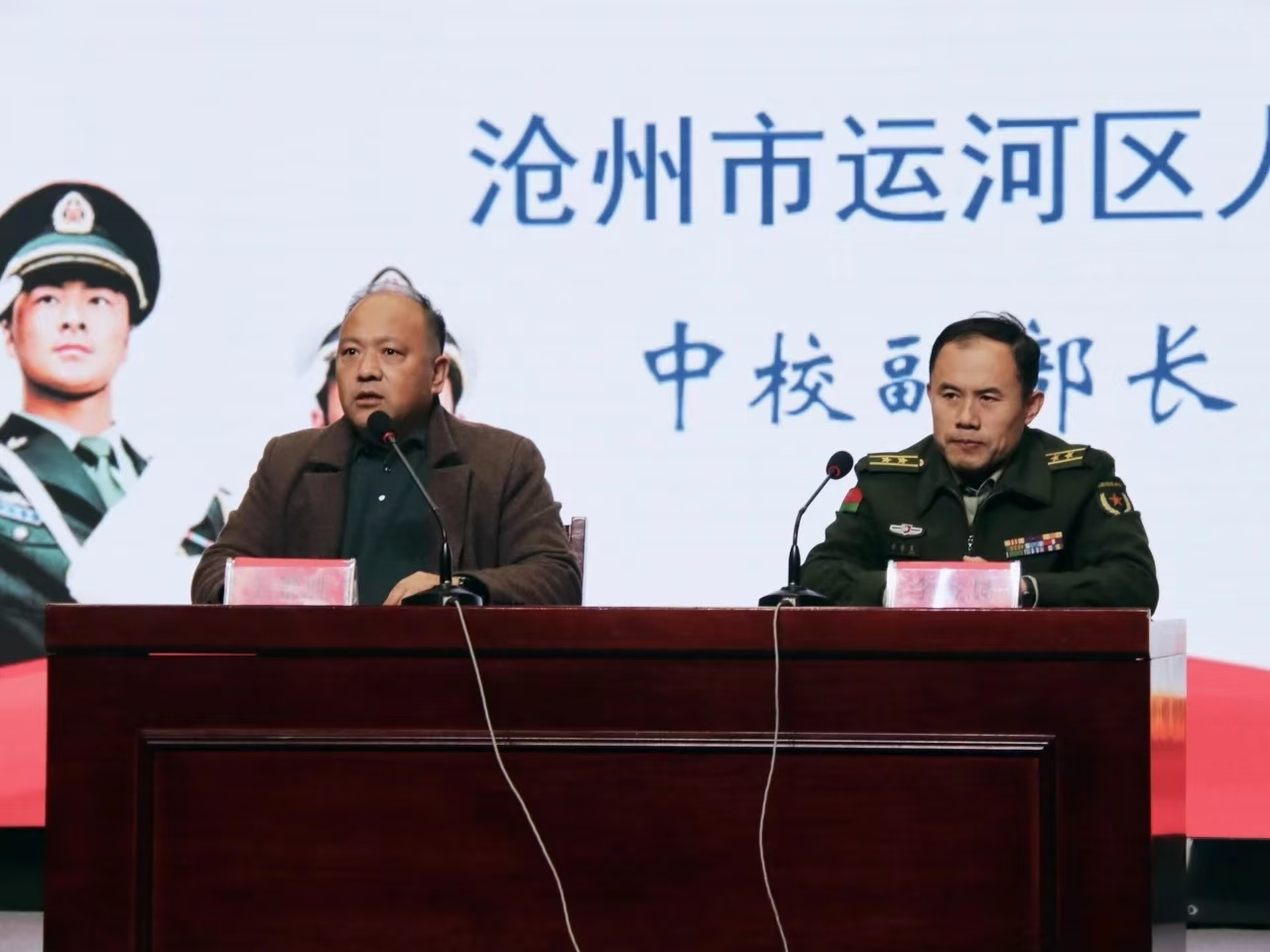 为深入开展国防教育,鼓励广大学子响应国家号召,积极参军报国、献身国防,威尼斯官网邀请沧州市运河区人民武装部做征兵政策宣讲。学生处副处长王景胜主持会议,各学院学生代表300余人参加。