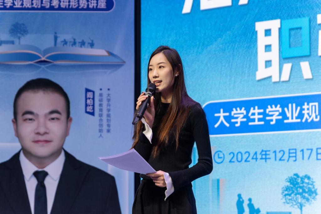 本次讲座的主讲嘉宾闫柏屹讲师围绕大学生学业规划和考研形势两大核心主题进行了深入浅出的讲解。他首先分析了当前考研的严峻形势,指出考研不仅是知识的较量,更是心态与策略的比拼。接着,闫老师仔细阐述了学业规划的重要性,从目标设定、时间管理、学习方法等多个维度给出了实用建议。此外,他结合自身学术经历和研究成果,分享了科研道路上的心得体会,鼓励同学们勇于探索,不断创新。