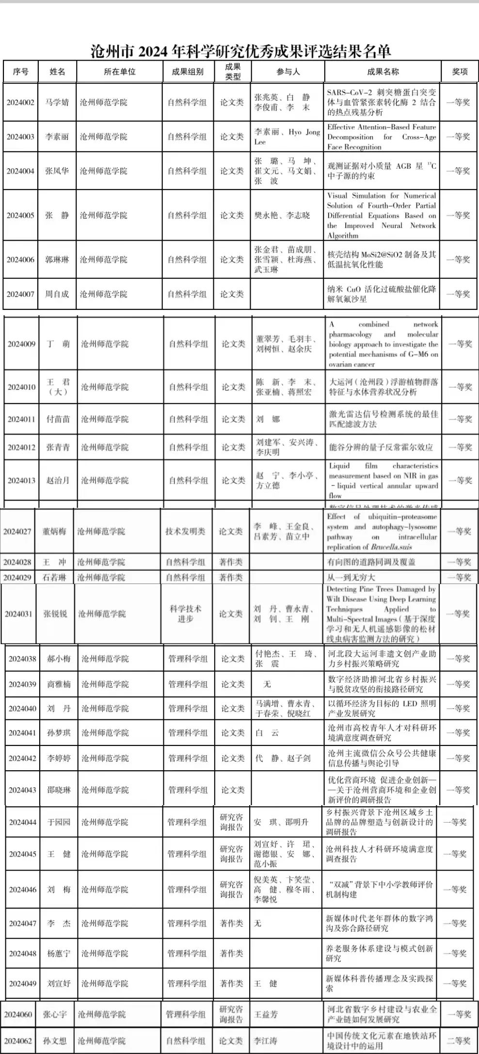 近日,沧州市2024年科学研究优秀成果评选结果名单新鲜出炉,威尼斯官网获奖实现了量质齐升,8040威尼斯最佳登录共斩获一等奖28项,是去年获奖数量的4倍,占获批总量的45.9%;二等奖18项,比去年增加13项;三等奖13项,比去年增加12项。