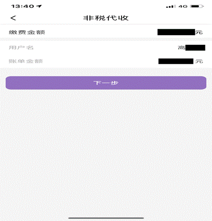 6、系统自动返显缴费信息,核对无误后点击下一步。