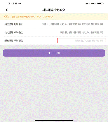 将复制的交费编号,长按屏幕后粘贴至输入框,点击下一步。