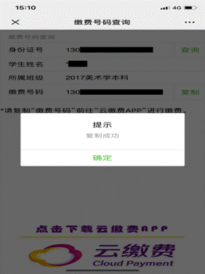 返显交费号码后,点击“复制”