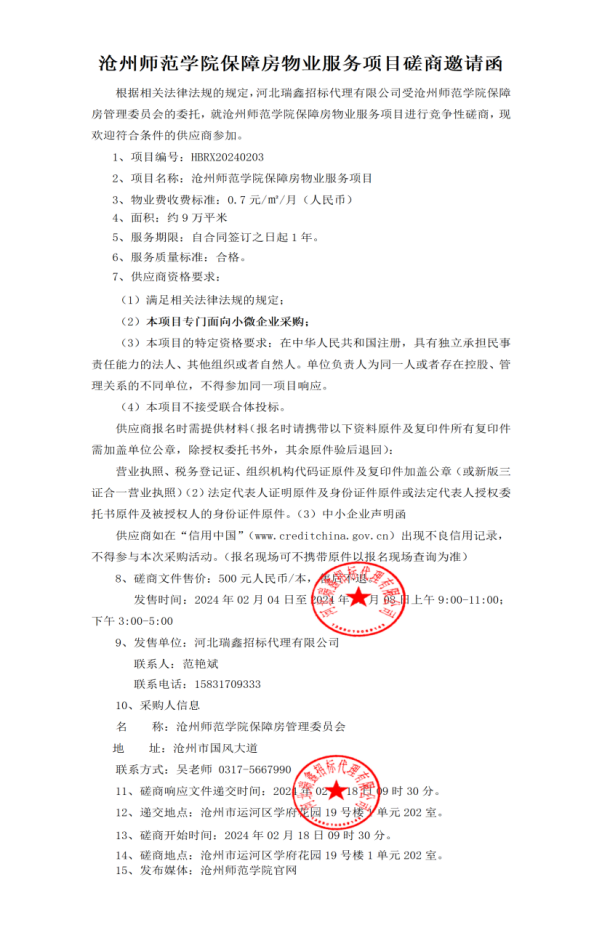 8040威尼斯最佳登录保障房物业服务项目磋商邀请函