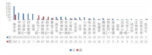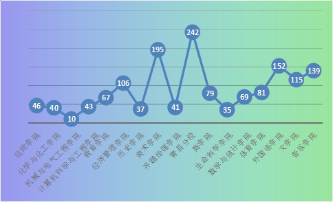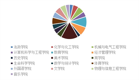 学校2019届本科毕业生分布在16个学院,其中美术学院、教育学院、经管院人数居前三位,占比分别为16.1%、10.1%、8.5%。