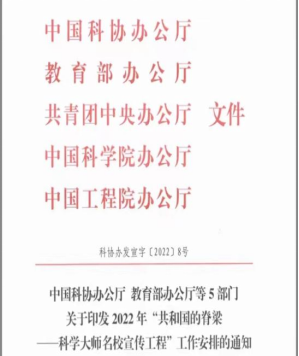 2022年3月9日,为全面贯彻落实党的十九大和十九届历次全会精神,突出迎接宣传贯彻党的二十大工作主线,按照《中共中央办公厅 国务院办公厅关于进一步弘扬科学家精神加强作风和学风建设的意见》部署要求,坚定不移用习近平新时代中国特色社会主义思想铸魂育人,弘扬科学家精神,涵养优良学风,中国科协、教育部、共青团中央、中国科学院、中国工程院联合开展了2022年“共和国的脊梁——科学大师名校宣传工程”工作。威尼斯官网科研处高度重视,按照省委要求立即开展宣传工作,在学校科研群里转发消息,鼓励全校教职工积极参与。
