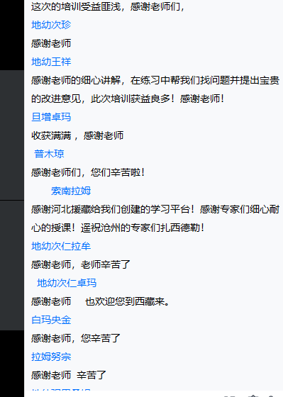 本次培训学员数量多,培训成果显著。学员们纷纷表示,这次培训让他们受益匪浅,不仅弄清了自己语音中存在的系统问题,提升了普通话能力,也学习到了很多语音知识和许多诵读教学方法。学员索南拉姆说,“感谢河北援藏给我们创建的学习平台!感谢专家们细心耐心的授课!遥祝沧州的老师们扎西德勒!”;学员札达尼玛央吉表示:“两天的学习虽短,但老师们的精心准备和耐心讲解让我收获很多,体会很多,感谢老师们!”