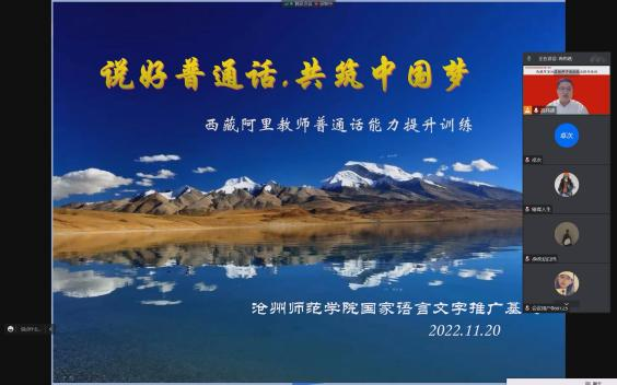 培训开启之前,基地在沧州市民宗局与西藏阿里地区语委办相关工作人员协助下,对西藏阿里地区的民族习惯与教师的国家通用语言文字应用能力进行深入细致地摸底调查,制定了周密详实的培训方案,确定了《说好普通话 共筑中国梦》的培训主题,并充分考虑阿里地区与沧州的时差,制定了符合阿里教师作息习惯的培训课表。
