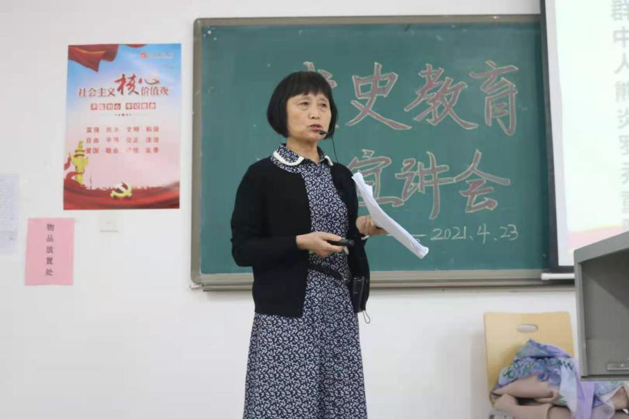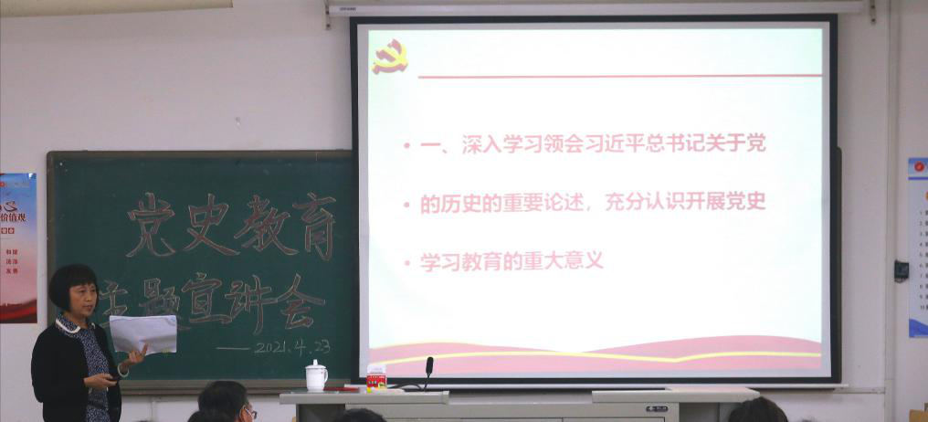 刘朝华老师指出,今年是中国共产党成立一百周年,也是“两个一百年”奋斗目标历史交汇的关键节点。历史是最宝贵的教科书,党史这门课不仅必修,而且必须修好。她说到,坚持以科学理论引领、用科学理论武装,是马克思主义政党永葆先进性纯洁性的根本保证,也是我们党的政治优势,要树立正确党史观,把学习习近平新时代中国特色社会主义思想同学习马克思主义基本原理贯通起来,同学习党史、新中国史、改革开放史、社会主义发展史结合起来,同新时代进行伟大斗争、建设伟大工程、推进伟大事业、实现伟大梦想的丰富实践联系起来,坚持用唯物史观来认识历史,坚持实事求是的思想路线,分清主流和支流,坚持真理,修正错误,发扬经验,吸取教训。