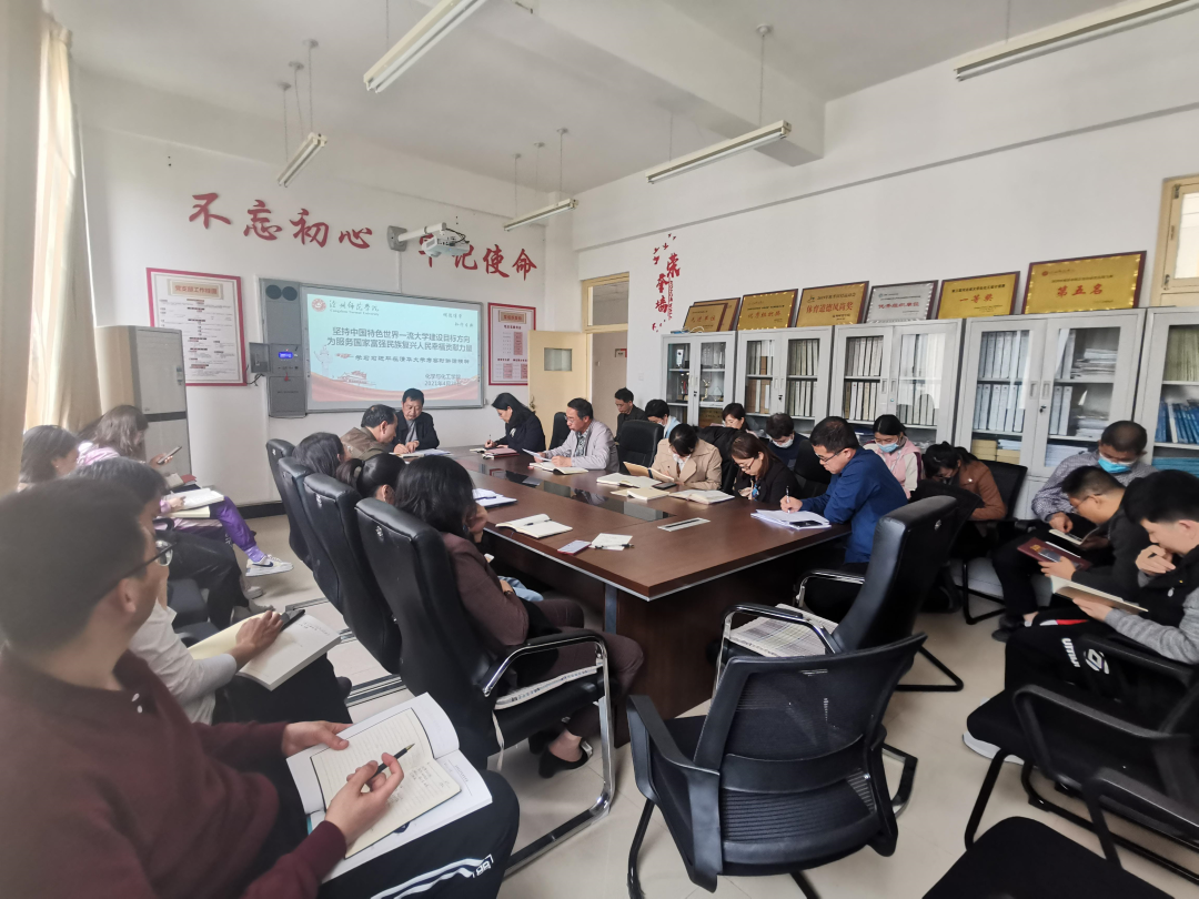 在清华大学建校110周年校庆日即将来临之际,中共中央总书记、国家主席、中央军委主席习近平来到清华大学考察,并发表了重要讲话。为深入贯彻落实习近平总书记讲话精神,按照《中共河北省委教育工委关于教育系统深入学习贯彻习近平总书记在清华大学考察时重要讲话精神的通知》要求,化学与化工学院高度重视,认真部署。