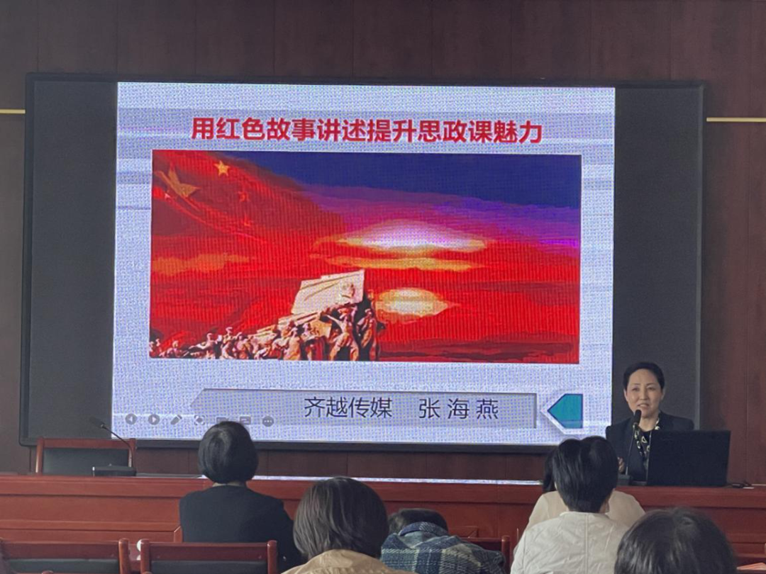 为进一步深化党史学习教育,全面贯彻落实学党史、悟思想、办实事、开新局的要求,进一步推动思政课“金课”建设,5月4日,马克思主义学院特邀齐越传媒学院院长张海燕教授为全体思政课教师作题为《用红色故事讲述提升思政课魅力》的专题讲座。