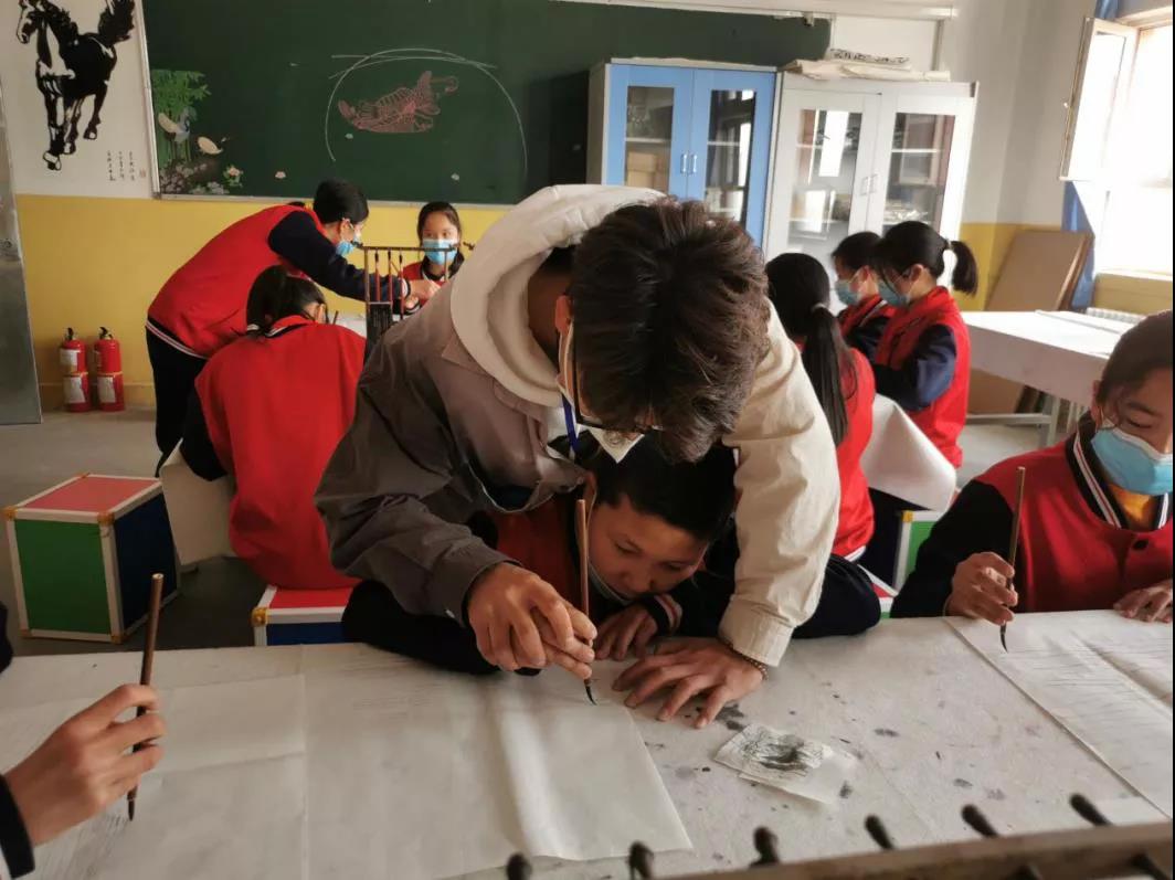 支教期间,为迎接中国共产党成立100周年,他组织当地的同学们开展了以“观党史,铭党志”为主题的党课活动,通过观看视频《重温党史1921年至2020年》《献礼建党100周年》等,让同学们了解党的发展历程。同时他也充分利用自己的特长,以国画的形式带领同学们去感悟党,去认识党,学习党的历史。