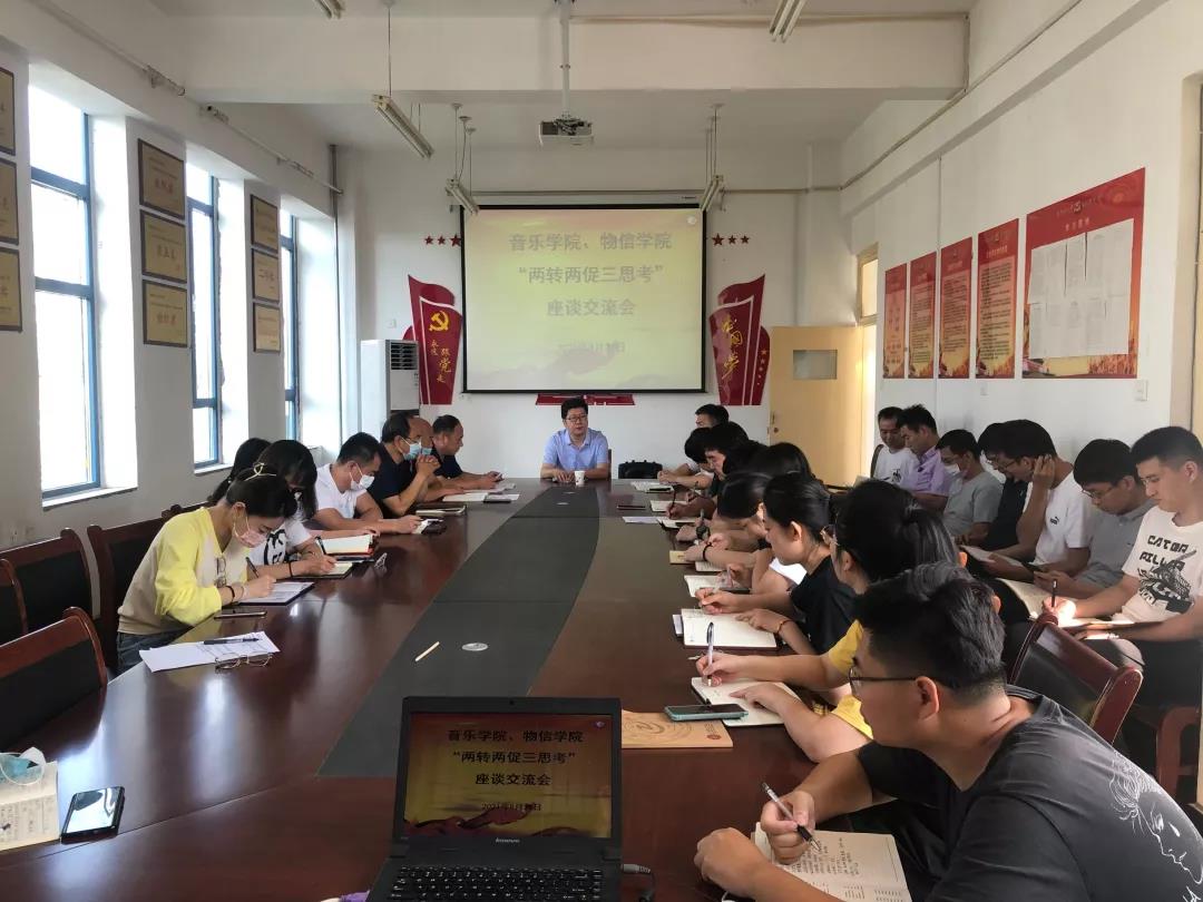 物信学院党总支书记迟建文主持交流会。音乐学院、物信学院的干部、教师结合个人思考和岗位职责进行了交流发言。